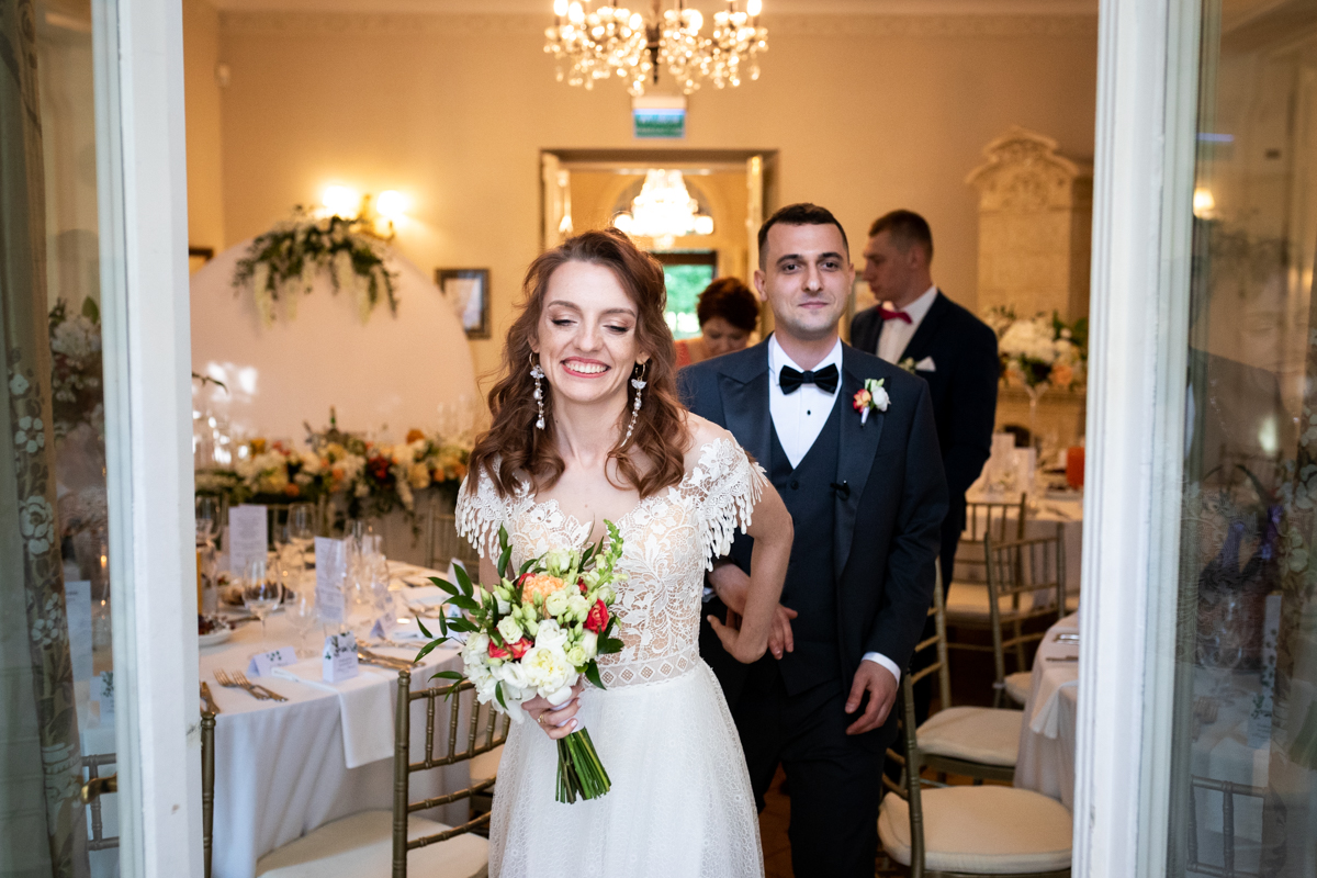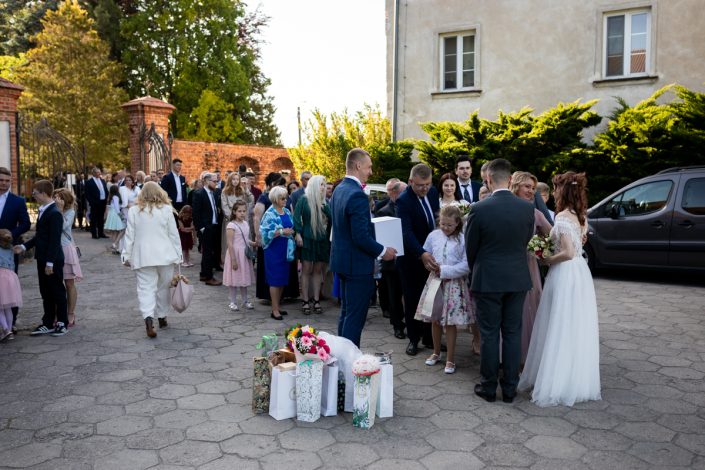 Wiele Par na miejsce swojej wymarzonej uroczystości wybiera przestrzenie pałacowe. Podobnie postąpili Kinga i Piotr decydując się na Pałac Zdunowo. Zdunowo, poza wspaniale odrestaurowanymi wnętrzami, oferuje również piękny ogród w którym można wykonać krótką sesję ślubną. A sam pałac swoim charakterem idealnie wpisuje się w tego typu uroczystość.